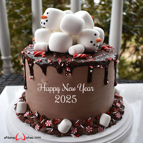 Custom Happy New Year 2025 Cake Design with Name Edit
