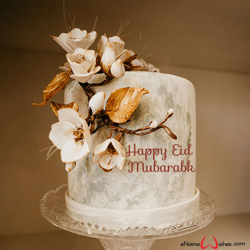 Happy Eid Mubarak Wishes Image with Name on Cake